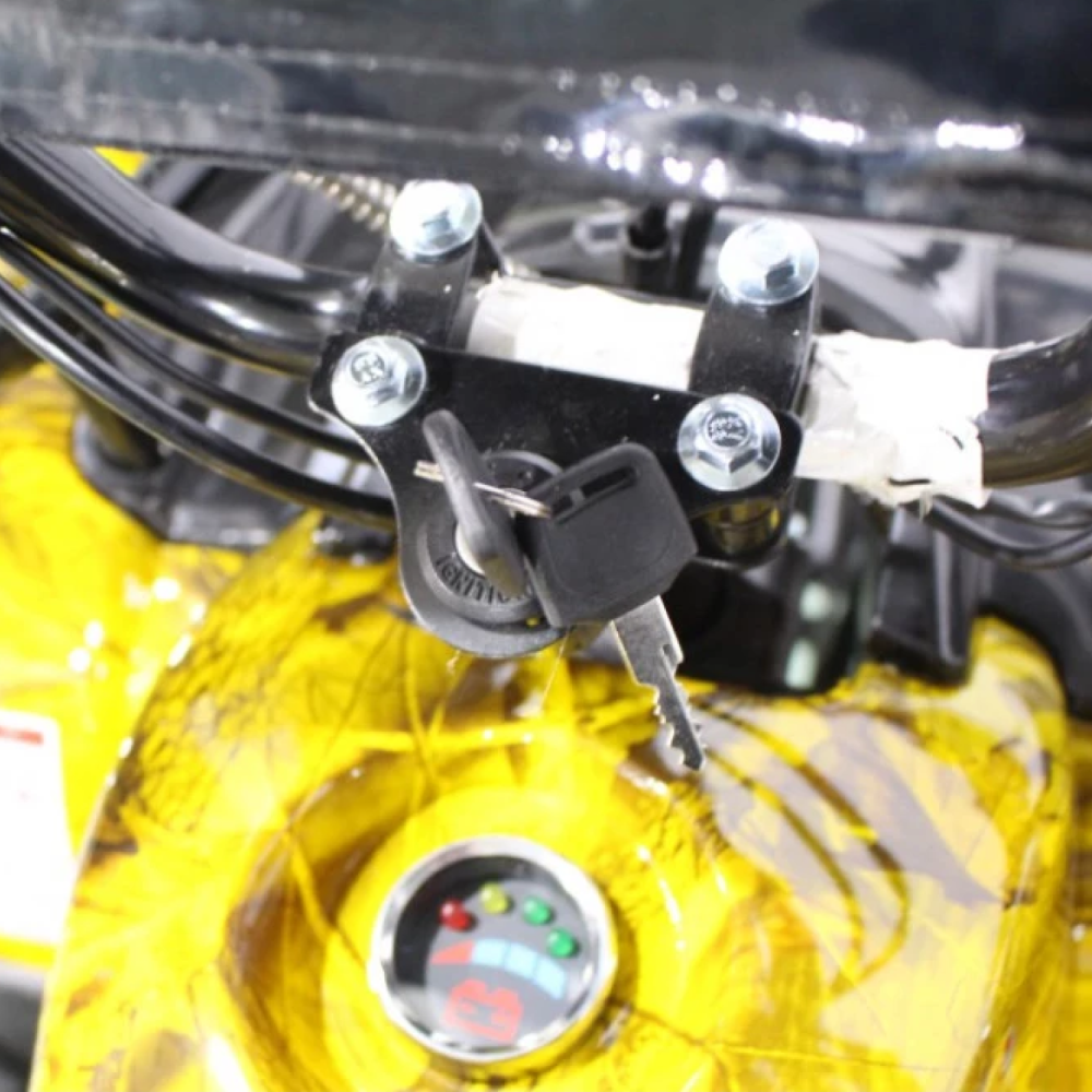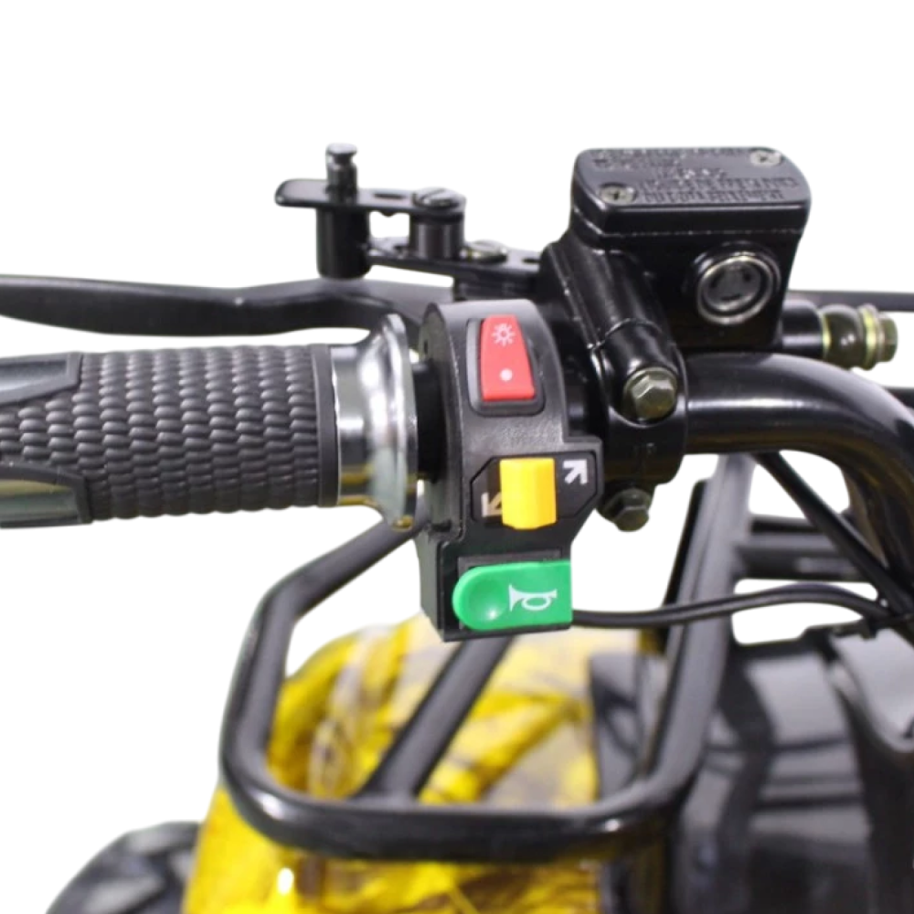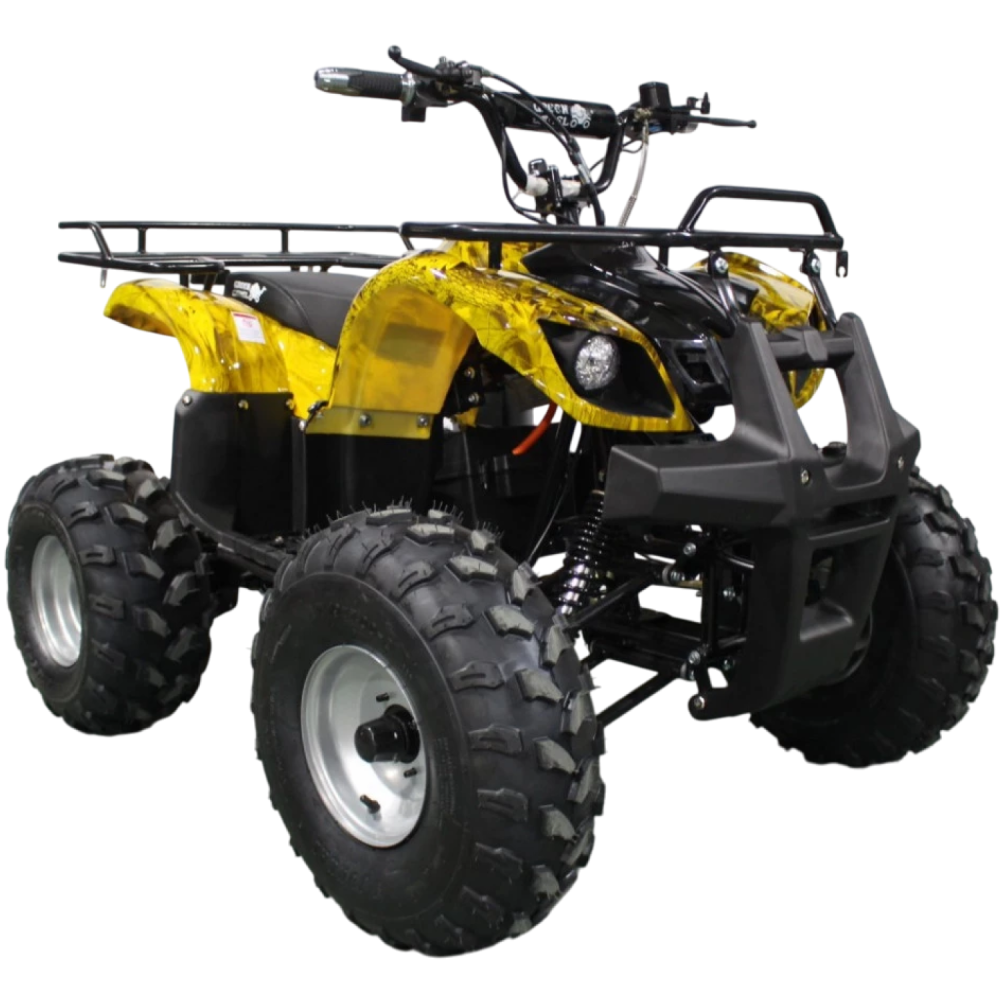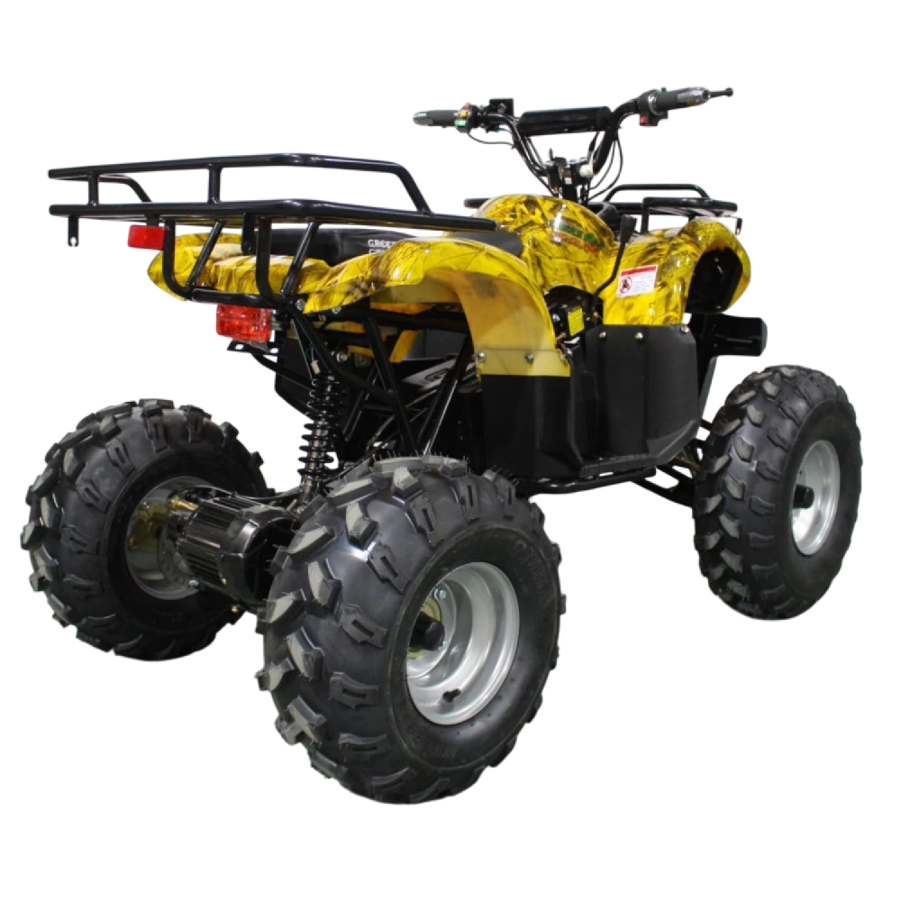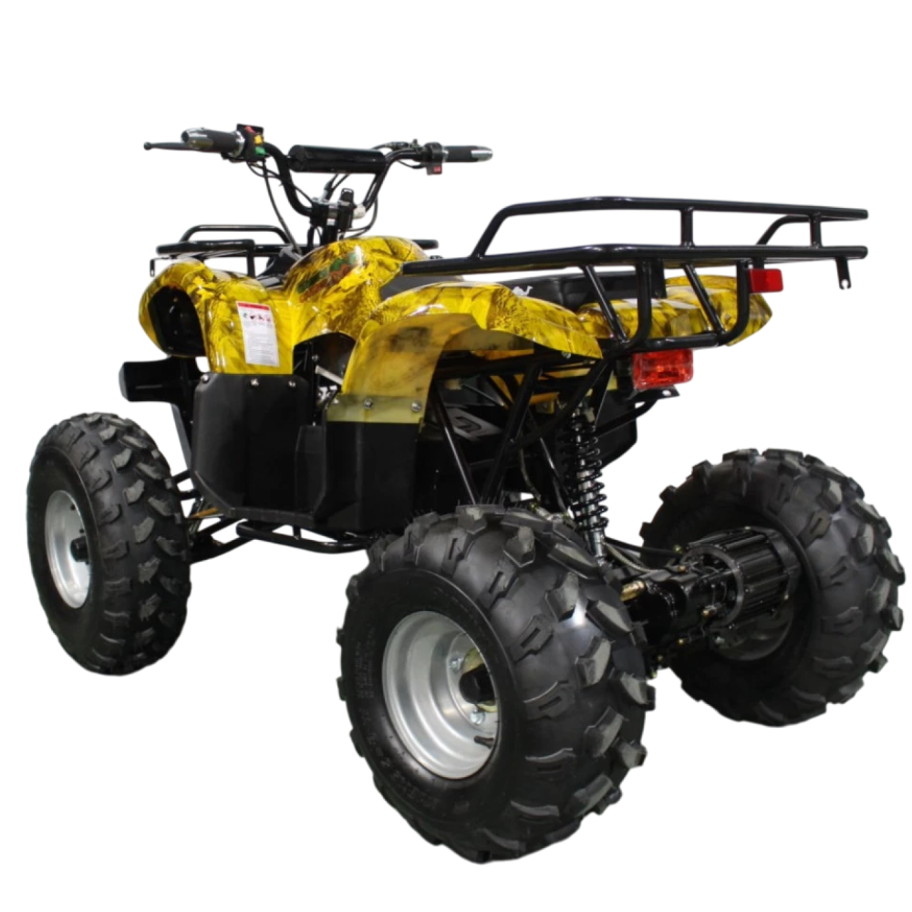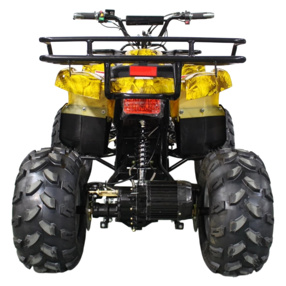 Данный квадрик обладает пониженной передачей, барабанными передними тормозами, а сзади - ножным дисковым гидравлическим тормозом. У него тихий и мягкий ход из-за отсутствия цепной передачи и наличия дифференциала.