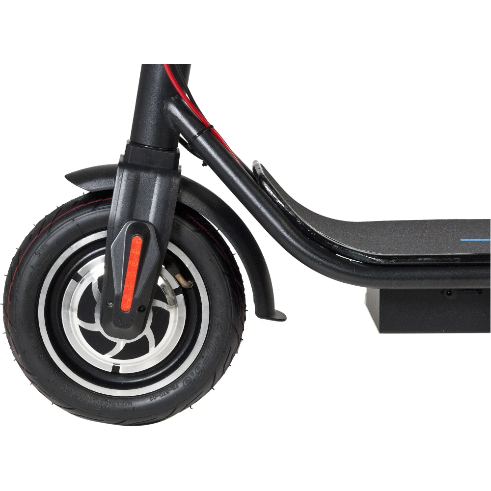 Пользователь легко и быстро разовьет максимальную скорость 35 км/час при мощности двигателя 350 Вт. Надежный аккумулятор обеспечивает прохождение расстояния в 45 км на одном заряде. Абсолютную безопасность поездок и возможность экстренного торможения возможна благодаря наличию оригинальных дисковых тормозов. Электросамокат рассчитан на максимальную нагрузку до 150 кг. Широкая устойчивая платформа для ног позволяет комфортно располагать ноги во время поездок. Усиленная рулевая стойка обеспечивает повышенную маневренность транспортного средства и обеспечивает баланс райдера.