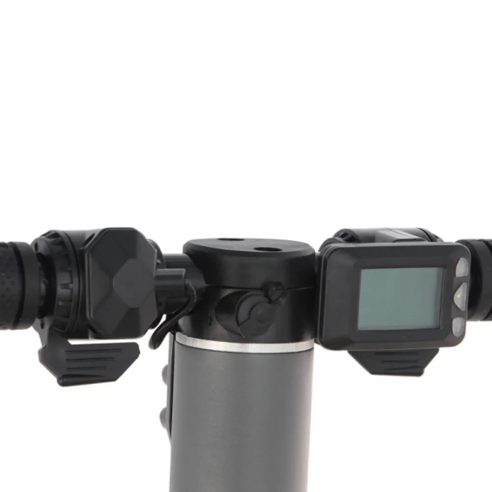 Система складывания и рулевая рейка самоката продуманы таким образом, что электросамокат складывается в одно движение ногой. Устойчивость во время езды на самокате обеспечивается благодаря широкой деке и нанесенному на нее противоскользящему покрытию. Наличие подножки создает дополнительные удобства.