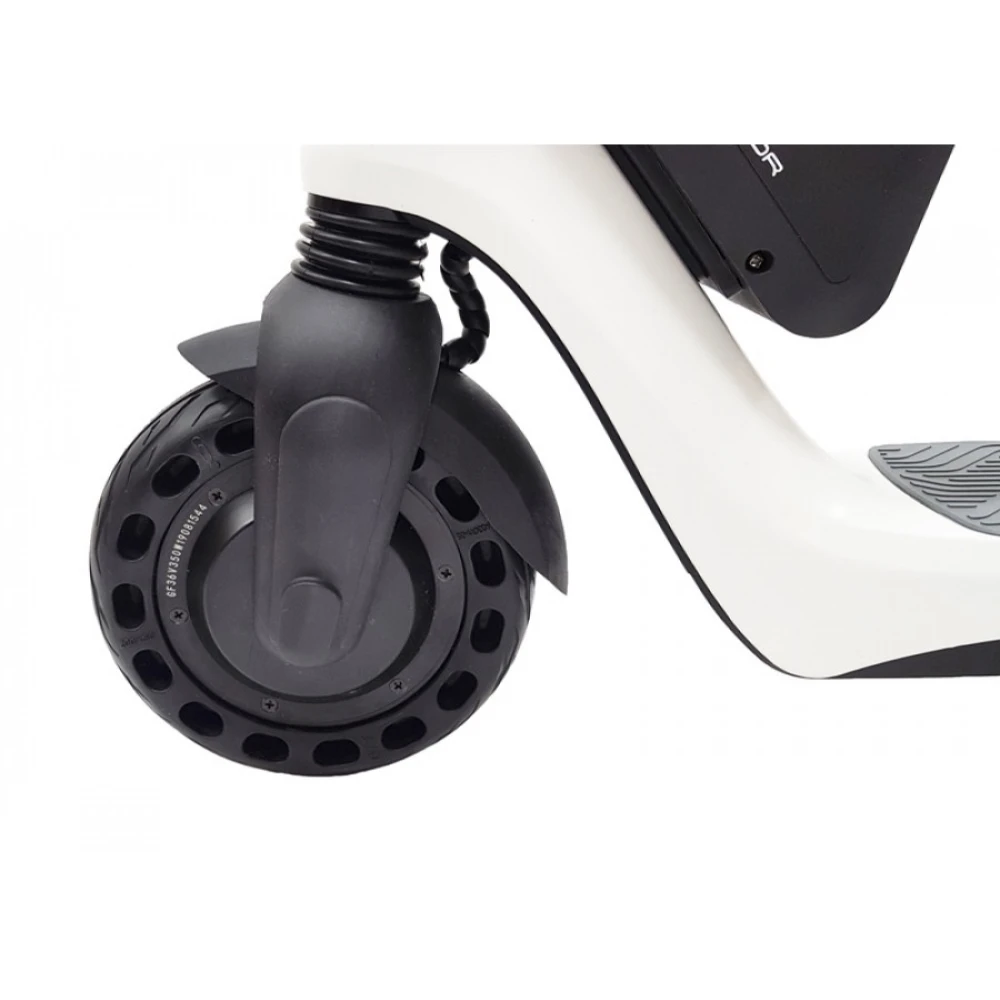 Электрический самокат оснащен передним 8-дюймовыми колесами, которые с легкостью позволяют преодолевать неровности дороги (трещины и рельефность покрытия).