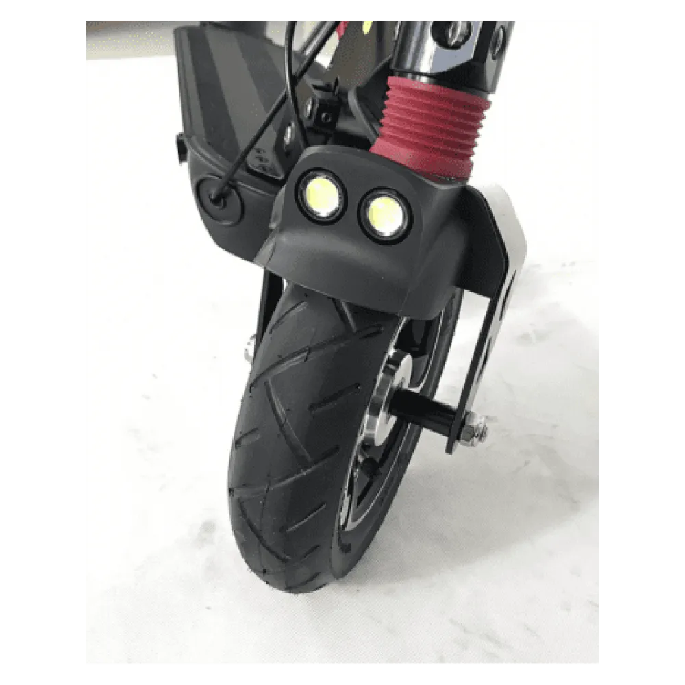 Электросамокат MaxSpeed Mini 5 оборудован колесами 8 дюймов, складная конструкция уменьшает его габариты в двое. На переднем крыле установлены две LED лампы, которые позволяют передвигаться в темное время суток. На правой стороне руля установлен информационный дисплей.