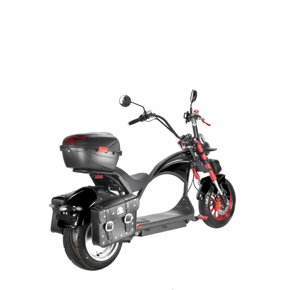Модель оснащена 12-дюймовыми вездеходными колесами, позволяющими преодолевать препятствия по городской и непроходимой местности. Двигатель мощностью 3950 Вт допускает развитие скорости до 71 км/час. Мощное АКБ с полной зарядкой до 6 часов остается работоспособным до 40 км пути.