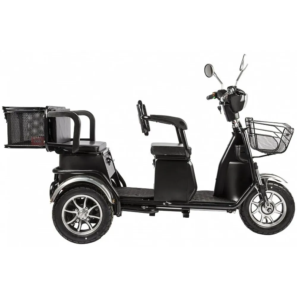 Технические характеристики допускают развитие скорости до 25 км/час и преодоление 30 км пути на одной подзарядке. Модель рассчитана для движения в вечернее и ночное время, имеет современную светодиодную фару, минимизирующую риск аварийных ситуаций. Для езды на трицикле не требуются водительские права. При покупке техники обратите внимание на отсутствие АКБ. Его придется докупить.ц