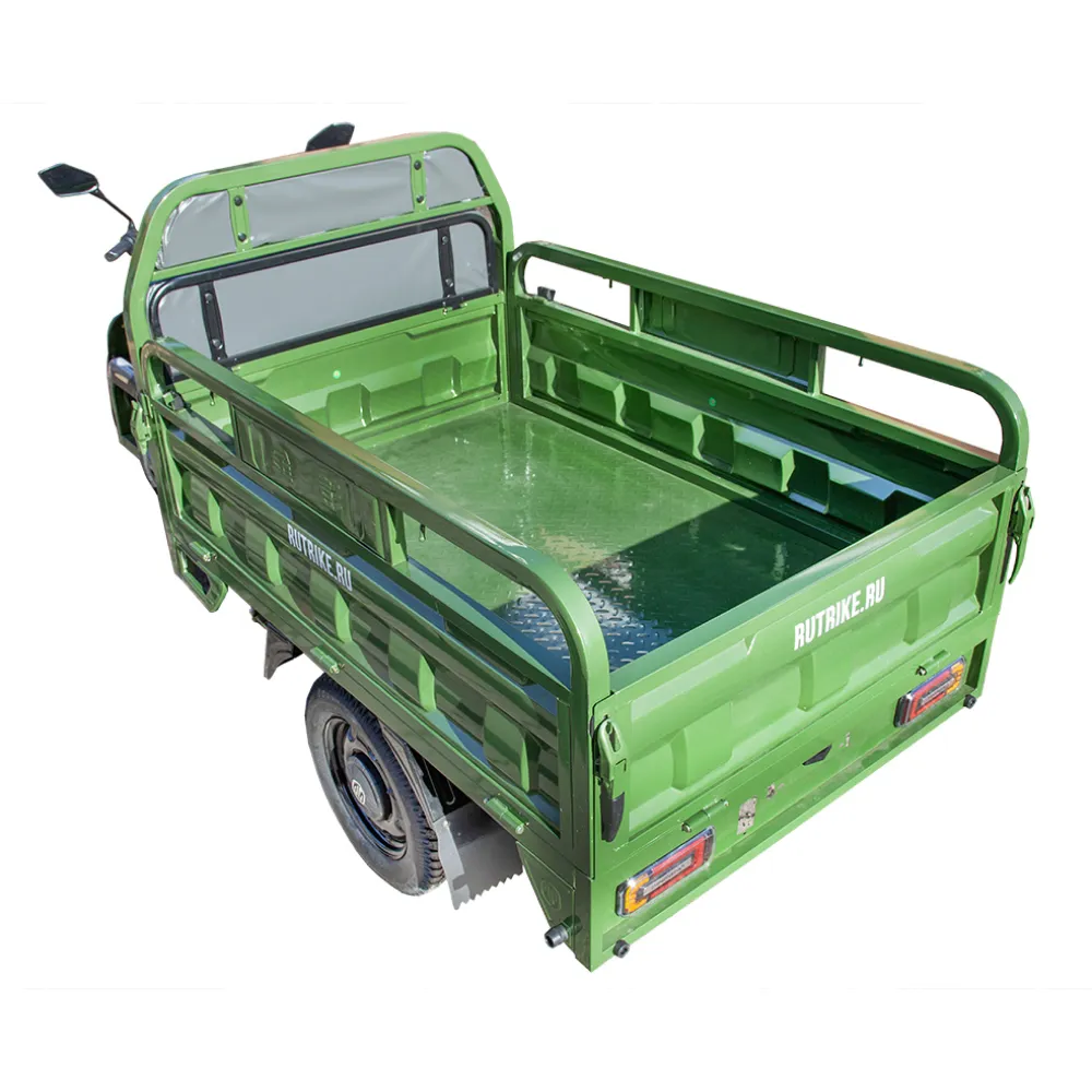 Грузовой электротрицикл Rutrike Маяк 1500 60V1000W зеленого цвета - это надежное и эффективное транспортное средство, предназначенное для перевозки грузов на небольшие расстояния. С его помощью вы сможете легко и быстро перемещать различные грузы с максимальной нагрузкой до 600 кг.