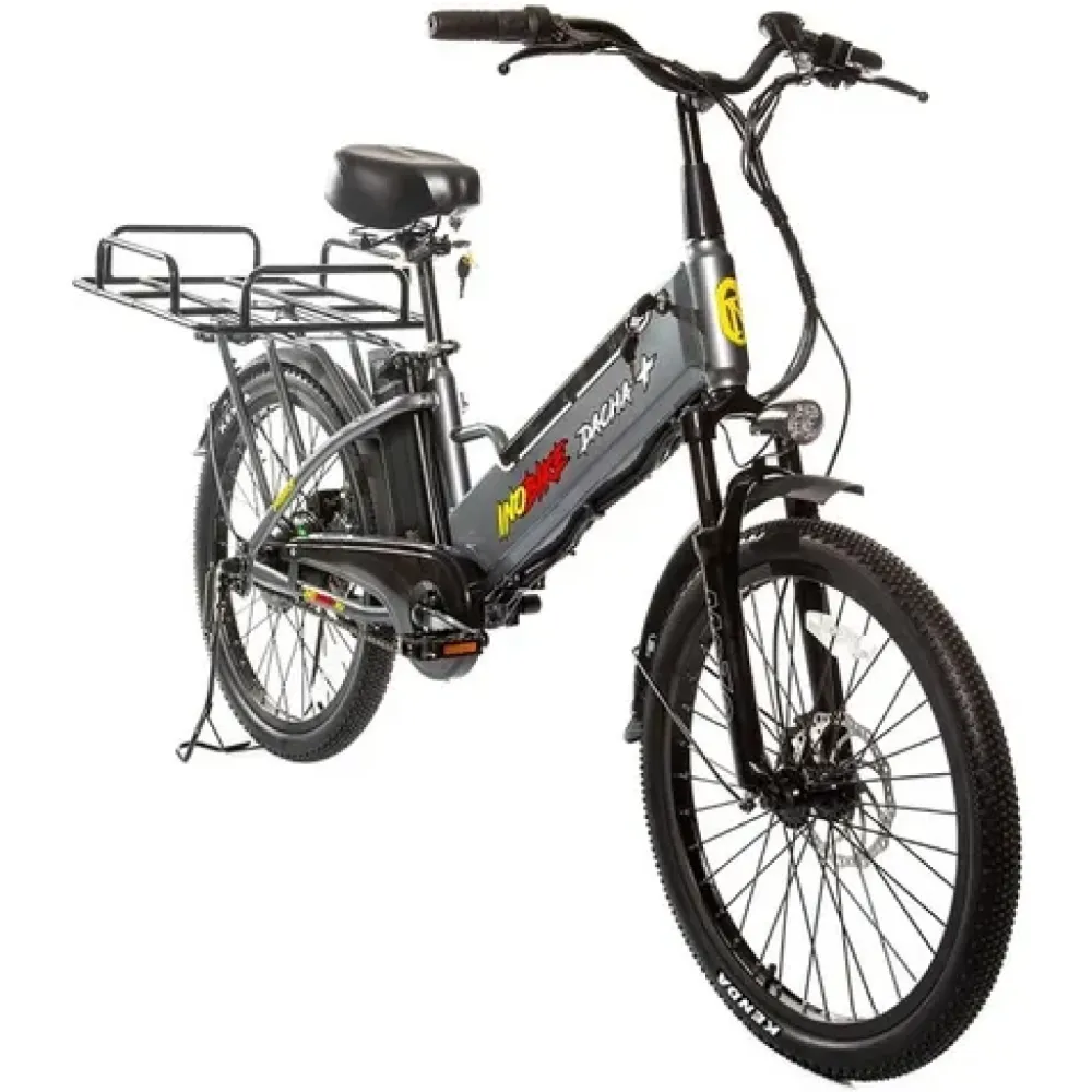 Электровелосипед InoBike Dacha+, серого цвета – модель с полуинтегрированной рулевой колонкой ждет своего покупателя. Взрослые пользователи массой до 120 кг могут кататься по городской местности и парковым зонам. Колеса с двойными алюминиевыми ободами, и передняя амортизация предусмотрены для поездок в условиях плохой проходимости. Мощный двигатель 500 Вт позволяет быстро набирать скорость до 30 км/час за короткое время. Эластомерная вилка пружинного типа смотрится презентабельно и имеет хорошее качество сборки. Техника оснащена широким багажником, что делает ее узнаваемой и популярной среди пользователей. Для большего удобства пользователя спортивное сидение и руль можно отрегулировать по росту.