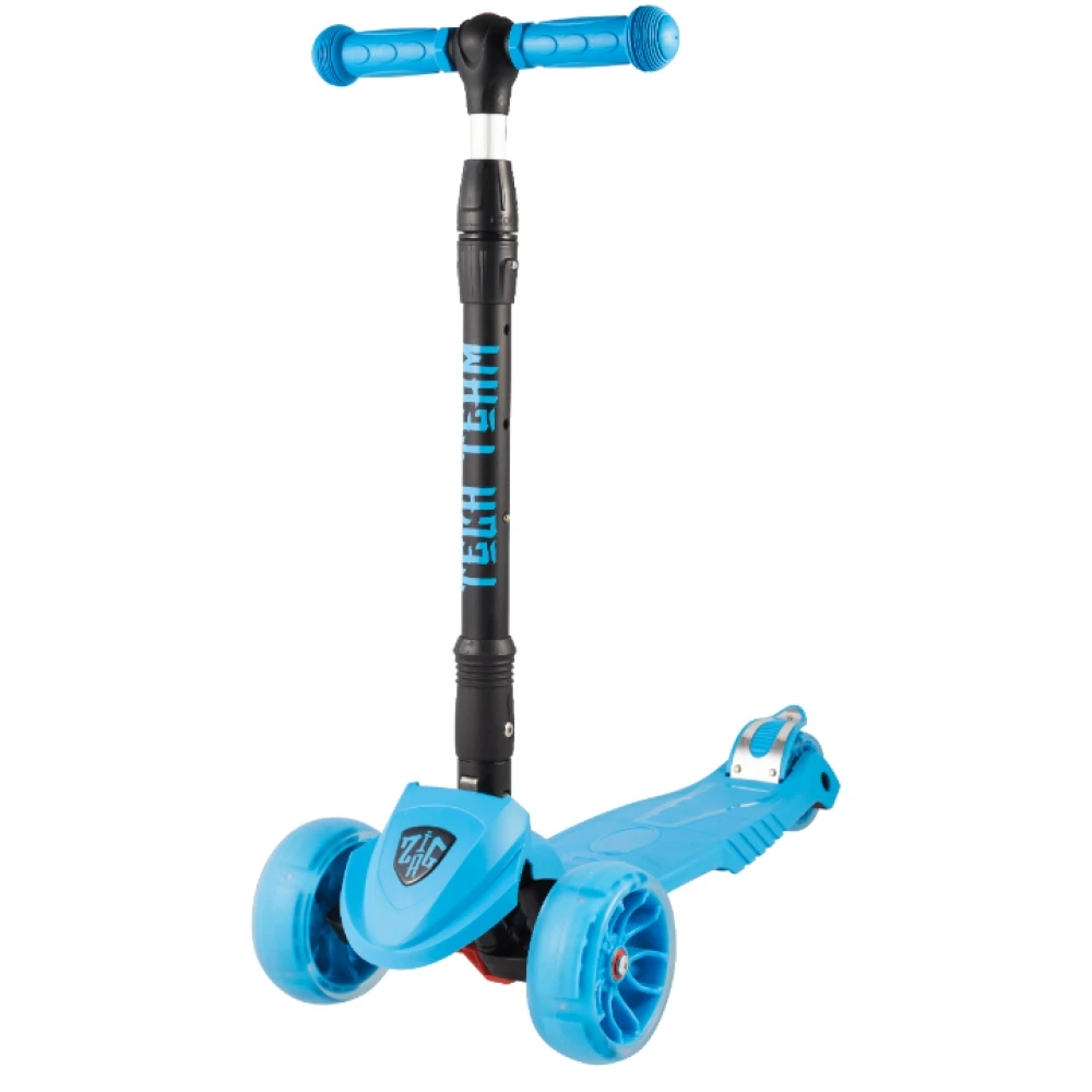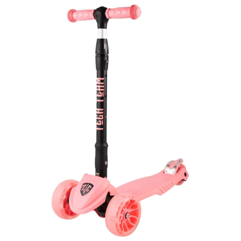 Самокат ZigZag 2020 – кикборд высокой надежности и проходимости. Оснащен светящимися колесами и инновационной системой складывания. Трансформация техники проводится легким движением, процесс напоминает автоматический. Параметры телескопического руля по регулируются по высоте в пределах 66-83см, руль фиксируется в трех положениях.