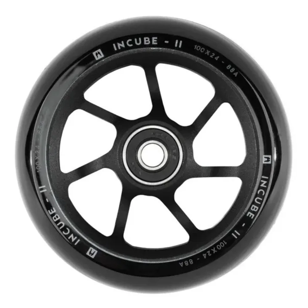 Колесо для трюкового самоката Ethic Incube wheel v2 100 mm – это современное техническое решение для райдеров, стремящихся к совершенству. Лёгкое, весом всего 289 г, изделие изготовлено из прочного алюминия, что гарантирует долговечность даже при агрессивном катании. Высококлассные подшипники ABEC 9 обеспечивают максимально плавное и стабильное вращение, позволяя выполнять сложные трюки с точностью. Диаметр 100 мм и ширина 24 мм способствуют идеальному сцеплению с любой поверхностью, а стильный черный цвет подчёркивает динамичный дизайн. Модель Incube v2 100x30 – выбор настоящих профессионалов, для которых важна каждая деталь и надежность при экстремальных нагрузках.