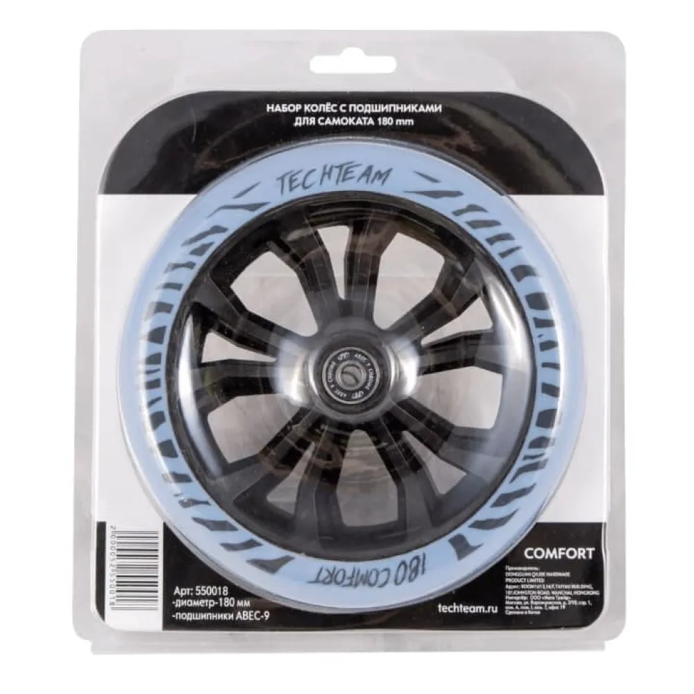 Набор колес с подшипниками для самоката 180мм (голубой)